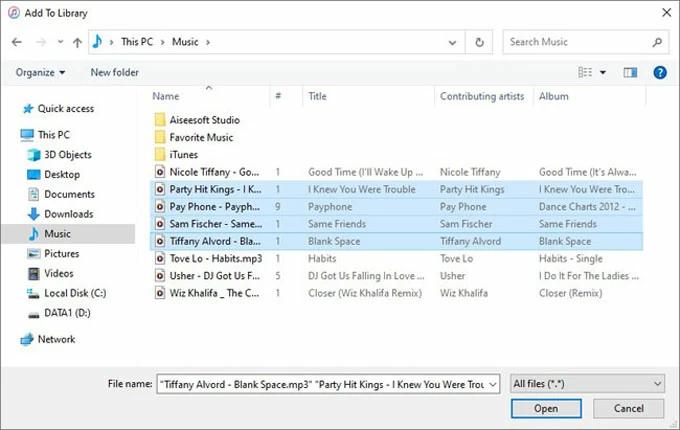 - Wählen Dateien > Datei zur Bibliothek hinzufügen.