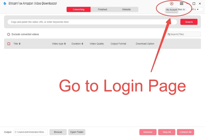 - Offen StreamFox Amazon Video Downloaderund wechseln Sie zum Anmeldefenster.